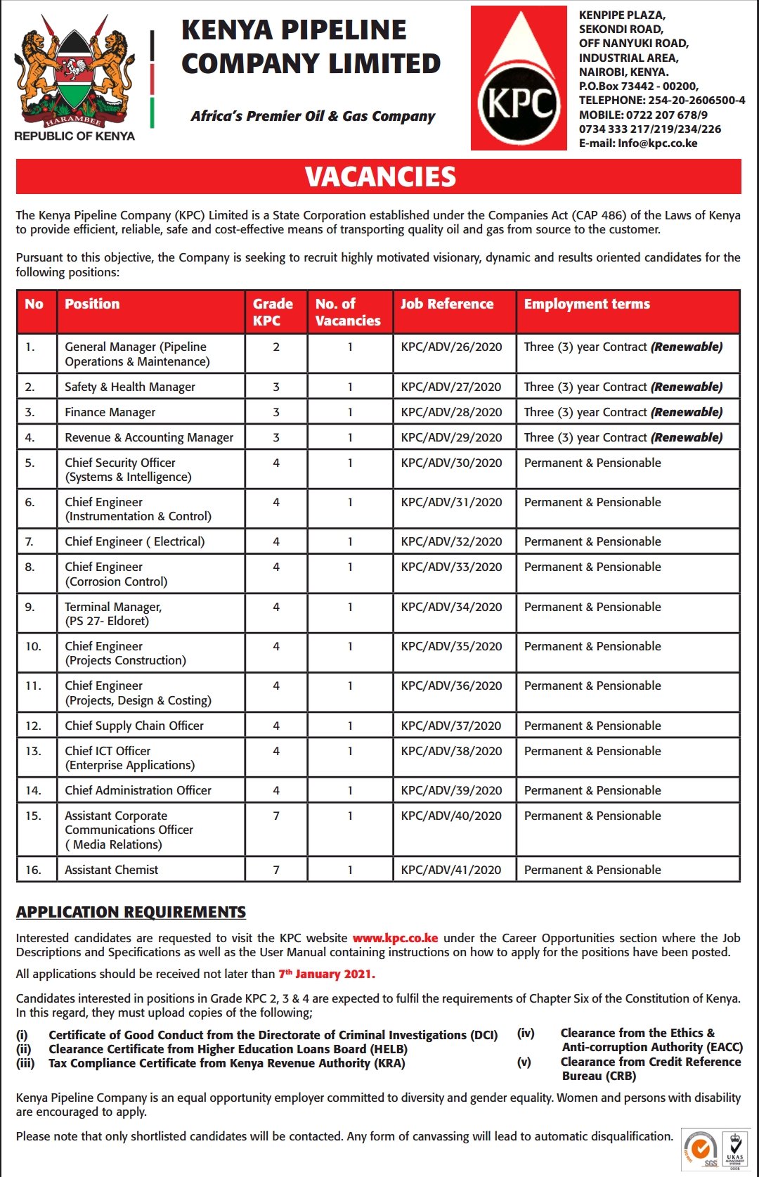 Kpc On Twitter Job Opportunities At Kenya Pipeline Company Read More On Https T Co Ptguafiqkt Https T Co Qbyqx93hym Twitter
